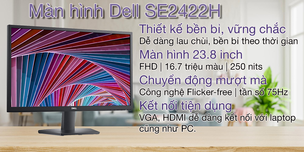 Màn hình máy tính Dell sử dụng công nghệ LCD LED-backlit có chức năng chống chói, tăng độ tương phản, độ chính xác về màu sắc và góc nhìn cho màn hình.